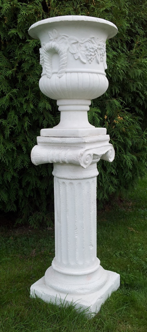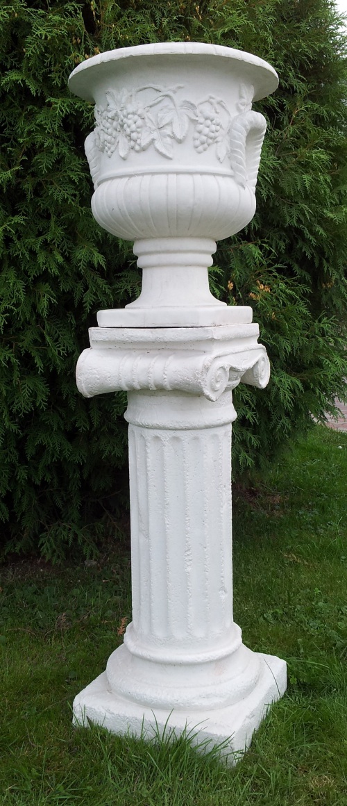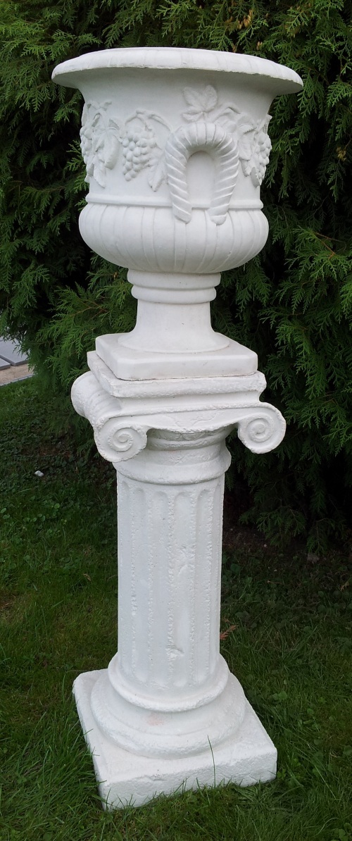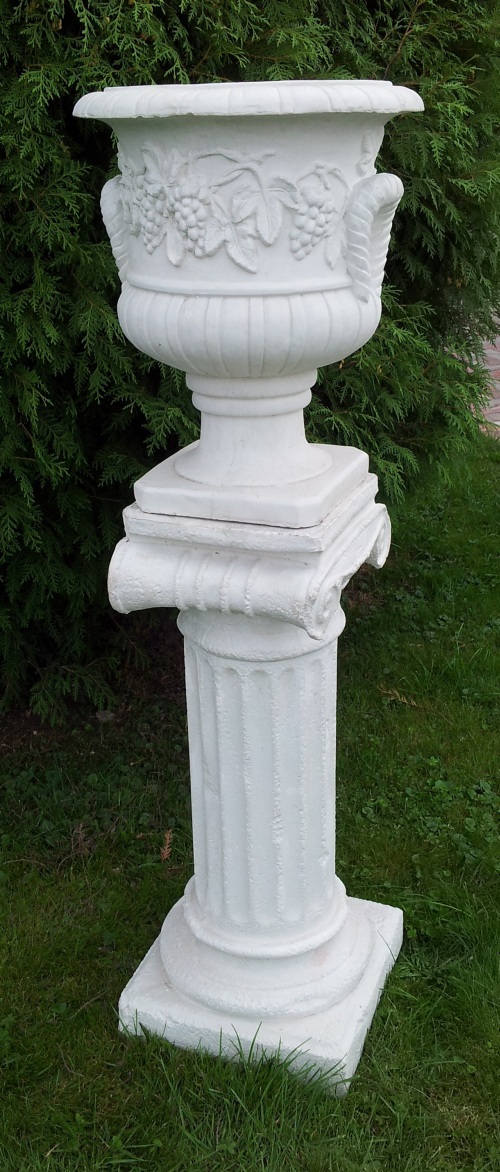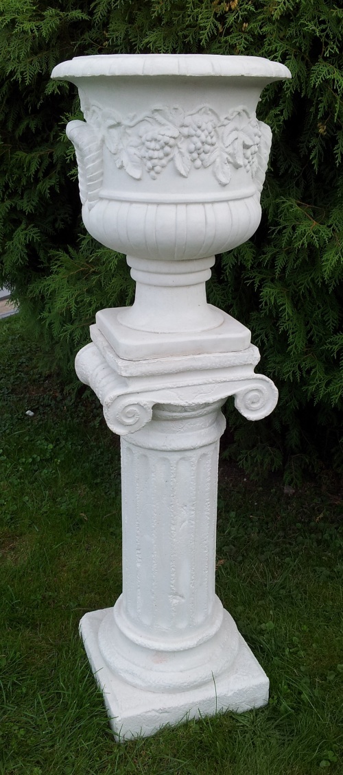W2115+P2105 – Donica, Wazon ogrodowy Mała donica z winogronami na postumencie